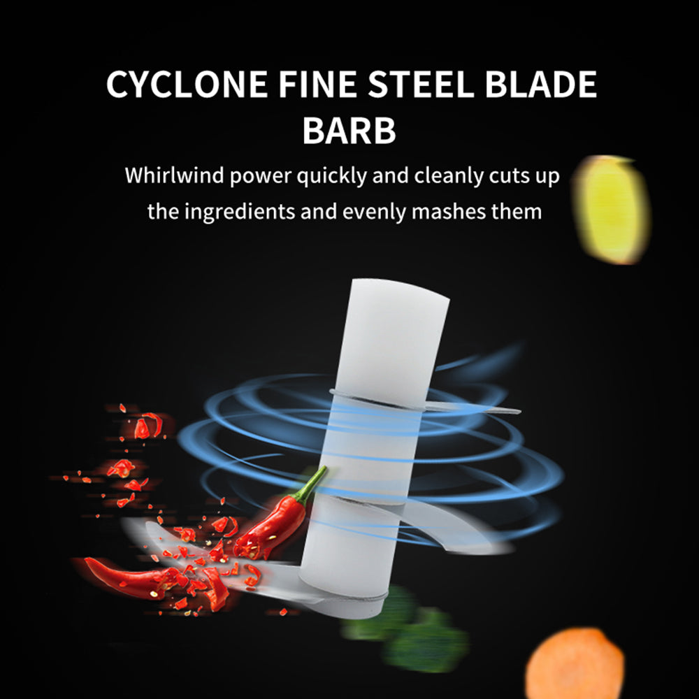 3. Fast Chopping: The sharp blade of the garlic cutter can quickly chop garlic, spices, nuts, vegetables, meat, ice cubes, etc. It's great for small meals. You can use it for cooking, baby food, and smoothie drinks.